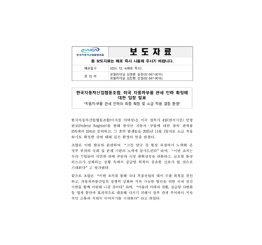 미국 자동차부품 관세 인하 확정에 대한 입장문 배포